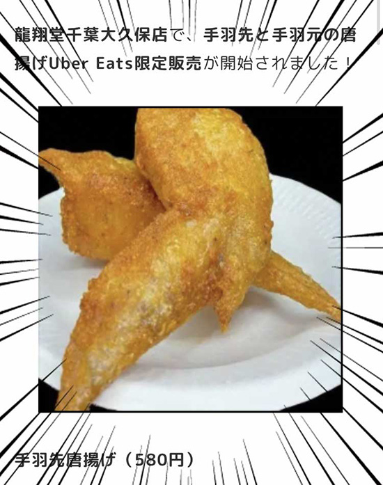 ってゆーか千葉大久保店の方では手羽先と手羽元の唐揚げがUber Eatsで頼めるんだw
