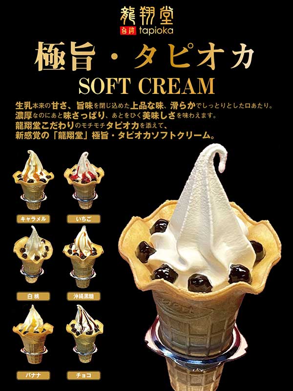 私の中ではタピオカといえば龍翔堂!ってずっと思ってたけど、まさかソフトクリームまで出てくるとは!!